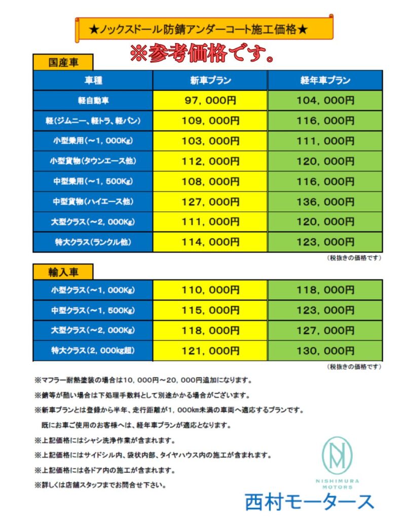 ※ノックスドール施工と比較すると、耐久性は劣る場合がございます。